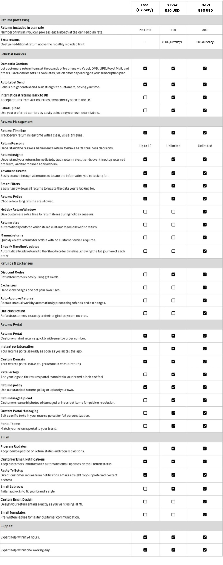 We support retailers of all different shapes and sizes and offer plans from Free to Gold.